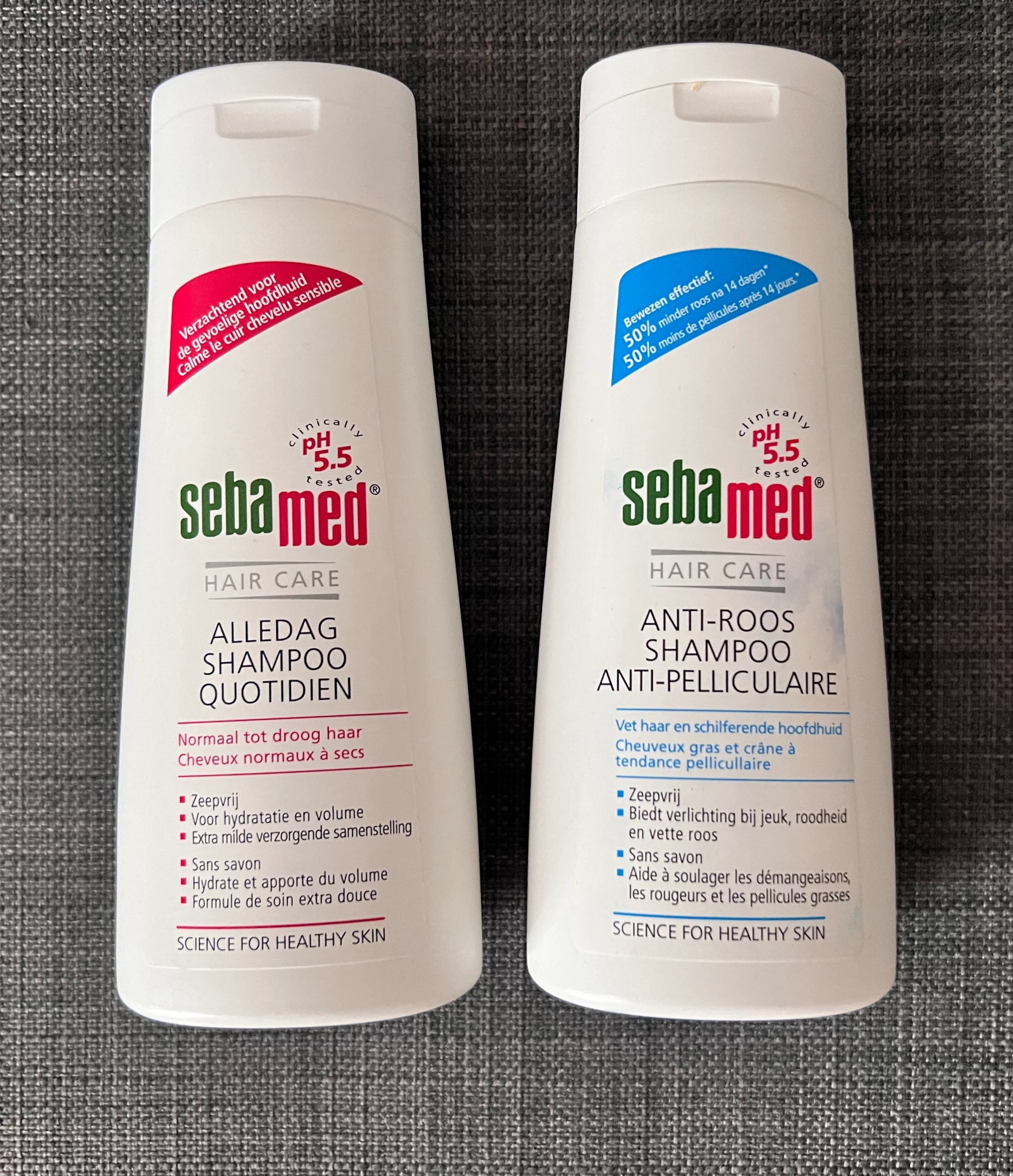 O que me ajudou bastante também foi os shampoos que comprei na Kruidvat que se chama Sebamed, mas eu gostei mais do da embalagem azul.