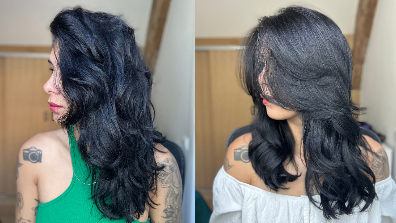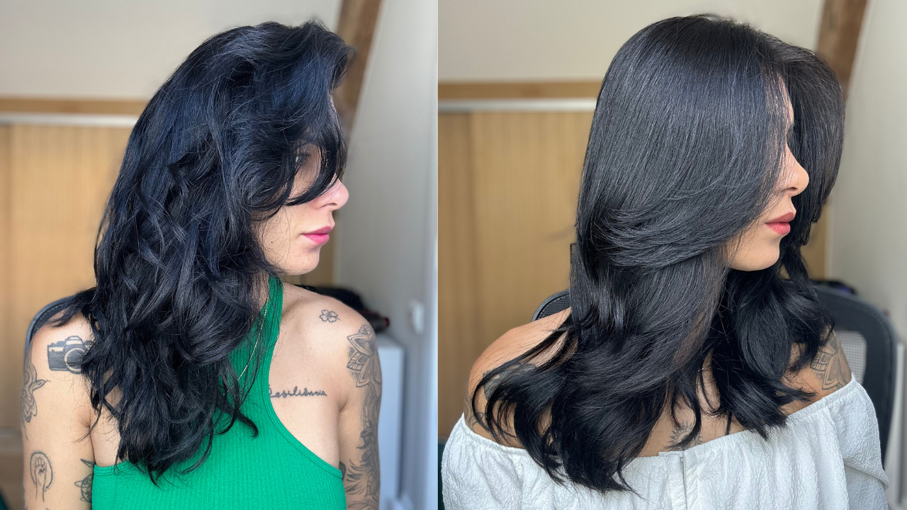 Cabelos muitos macios, soltinhos, sem frizz e com brilho.