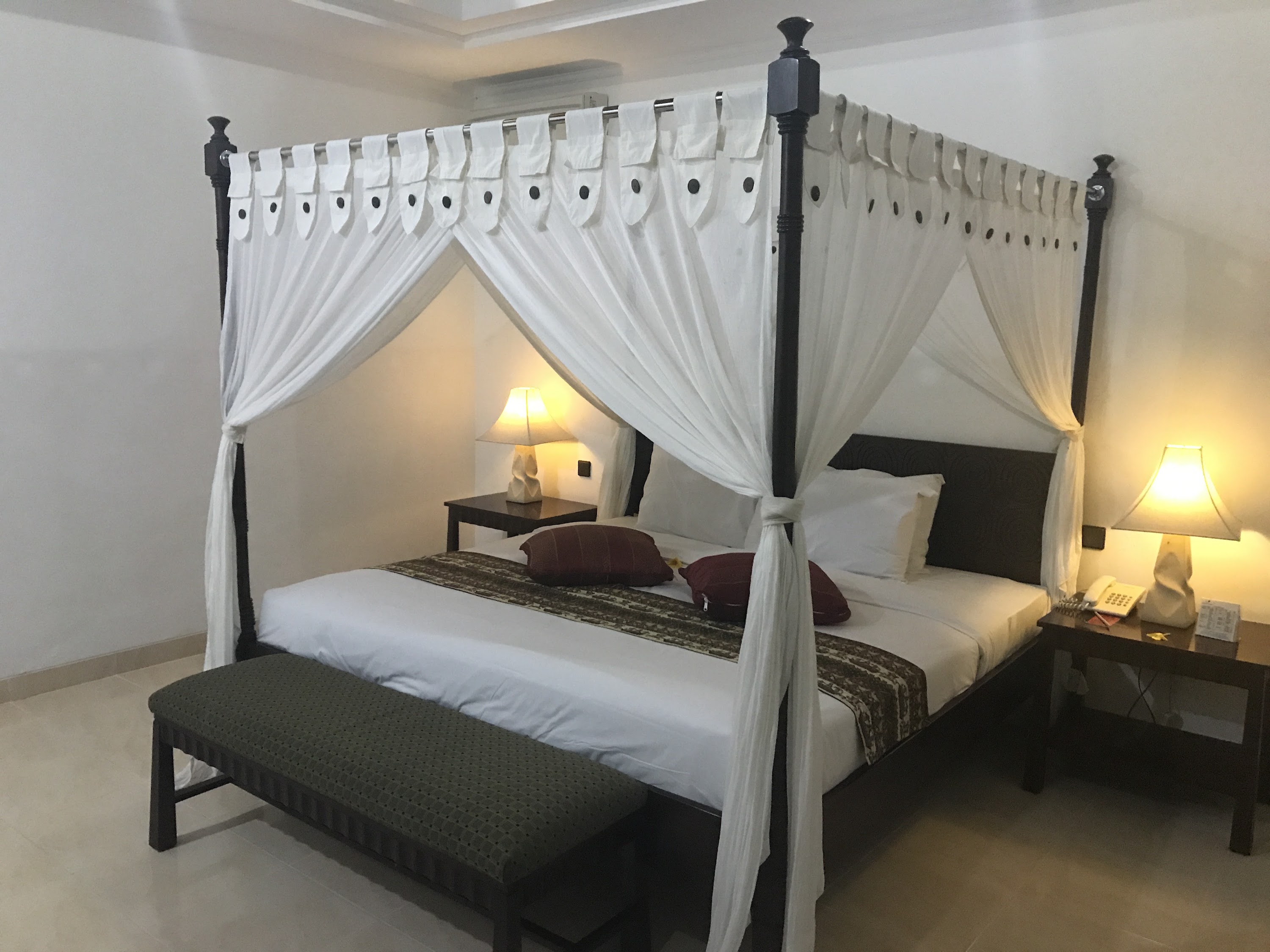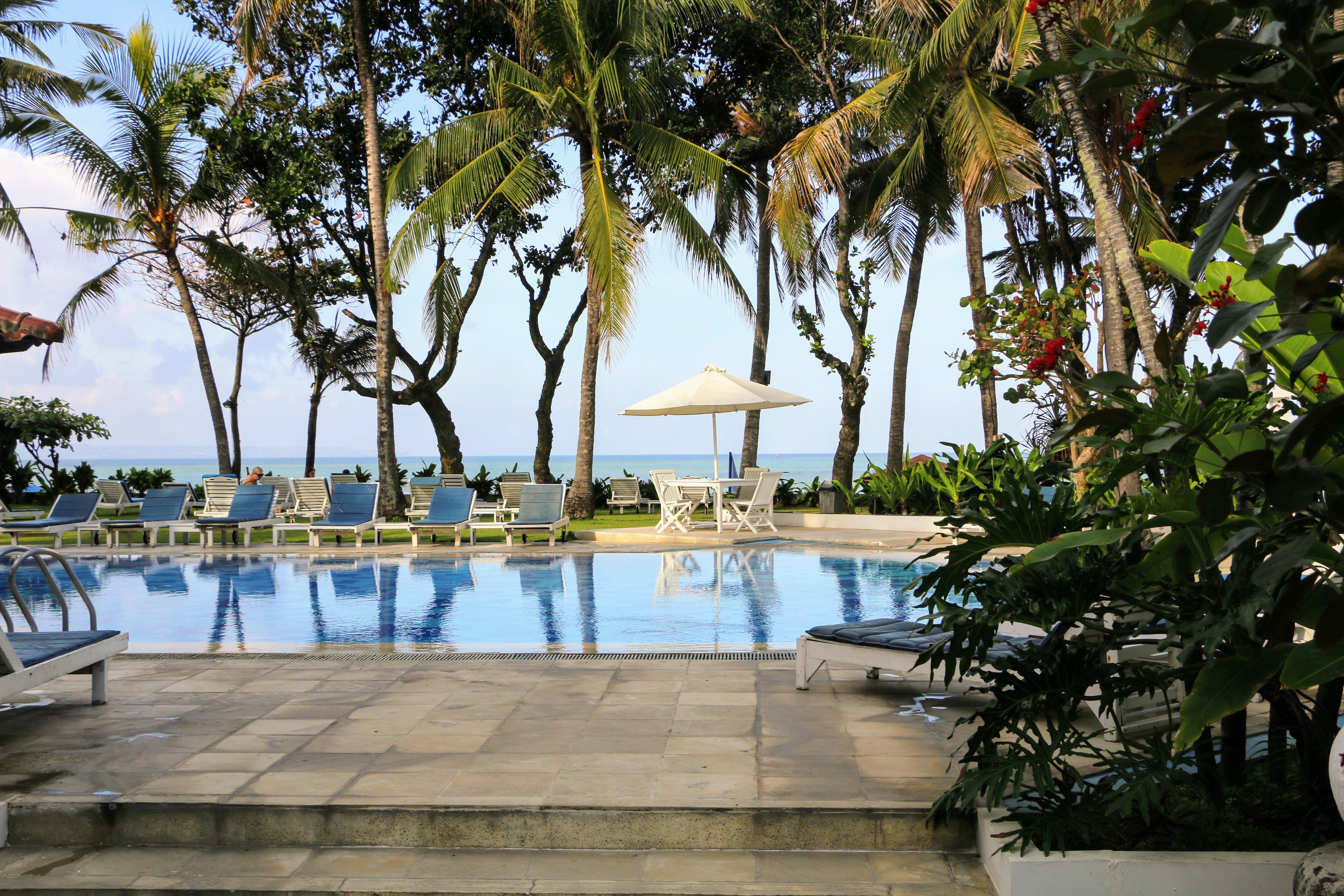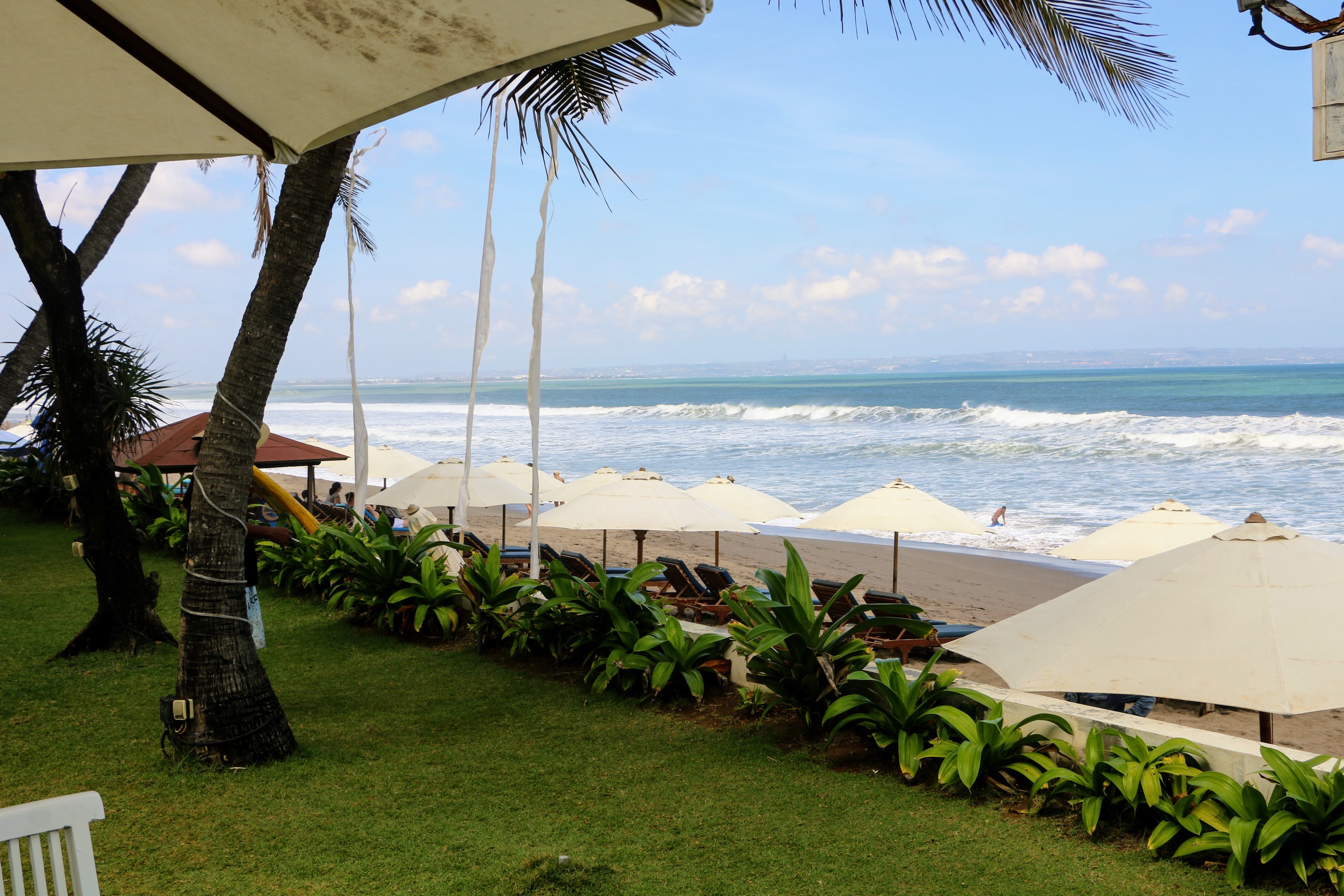 Escolhemos um lugar mais calmo e barato, até mesmo porque viajamos somente nos finais de semana então não compensa pagar caro em acomodações. Ficamos no Legong Keraton Beach Hotel, que é de frente para o mar, simples, confortável e agradável, ficamos em um quarto de frente para piscina.