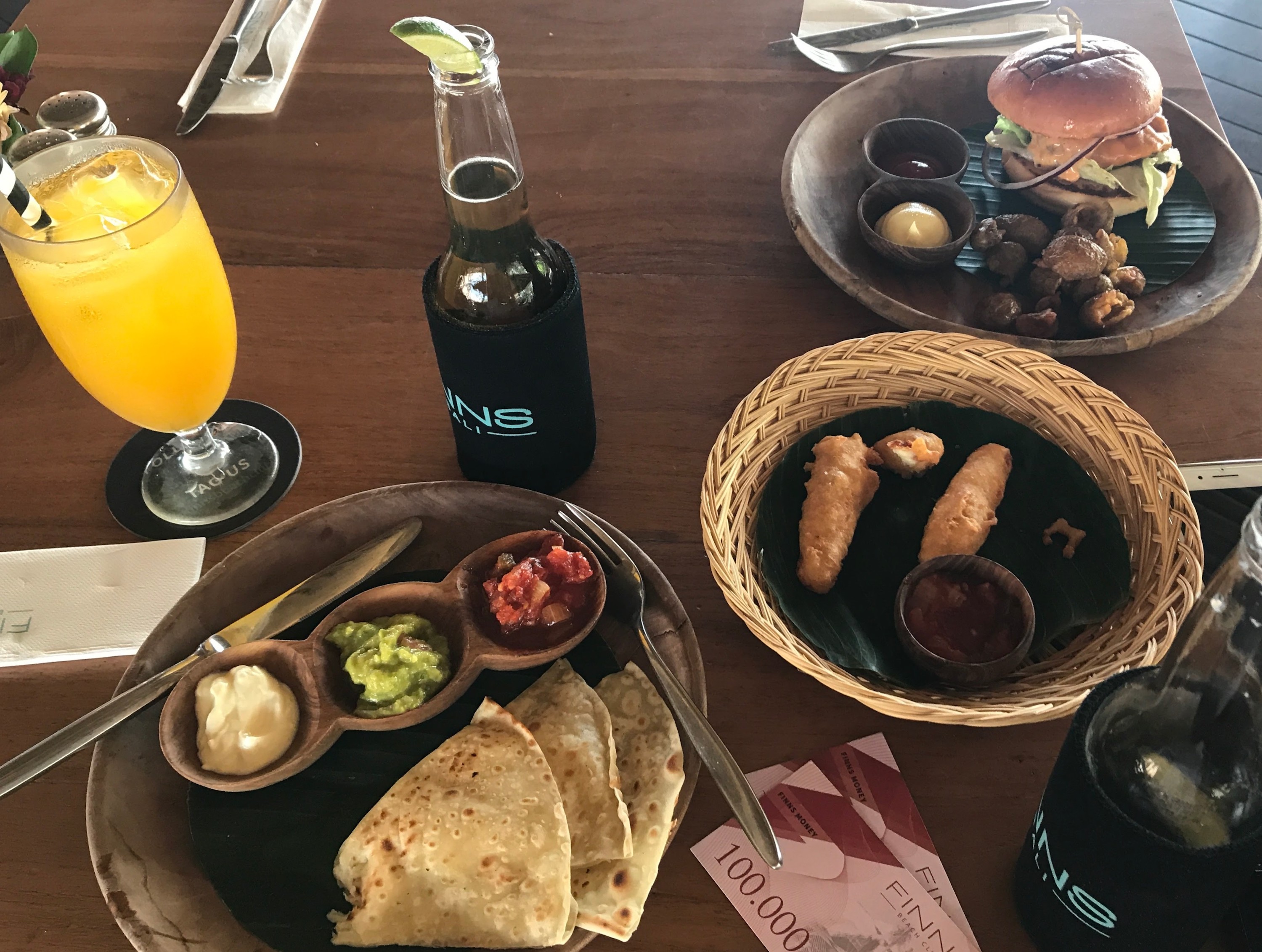 Ao lado do hotel tem o “Finns Beach Club” que na verdade também é um hotel da uma olhadinha aqui, mas a maior procura e pelo bar na piscina e o restaurante.Tem um cardápio bem variado de comida/bebida na parte da manha com opções mais rápidas(petiscos, pizzas, hamburger..) e a noite o cardápio muda, mas continua com muitas opções, não é caro acho que pela qualidade do atendimento e a qualidade da comida os preços são ok, recomendo com certeza :D