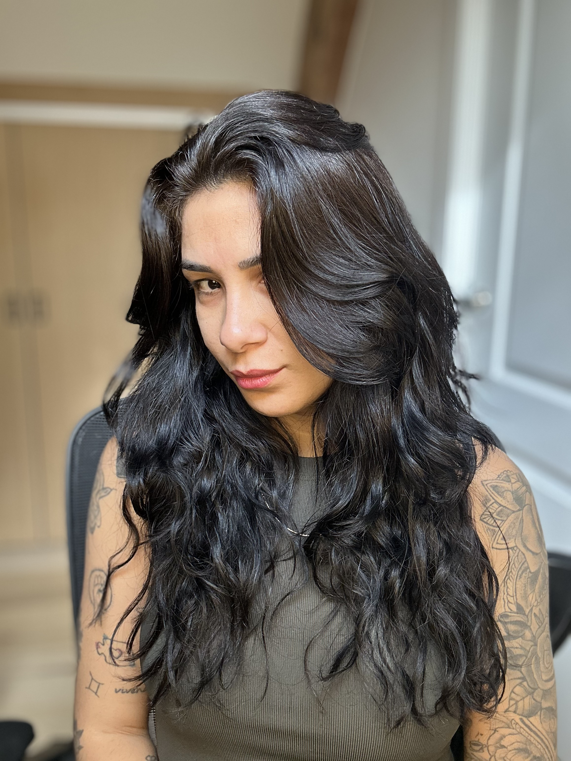 As minhas primeiras impressões dos produtos foram, eu amei o cheirinho um pouco cítrico e um pouco floral super leve, quando enxaguei o pré-shampoo meu cabelo estava muito macio, depois apliquei o shampoo de limpeza suave que fez muita espuma e libou bem o cabelo sem agredir os fios, em seguida apliquei o condicionador que tem uma textura mais grossinha parecido com um máscara e o cabelo ficou ainda mais macio porém encorpado, depois de enxaguar o condicionador o cabelo continuou macio e encorpado. [caption id=“attachment_126511” align=“aligncenter” width=“2316”]