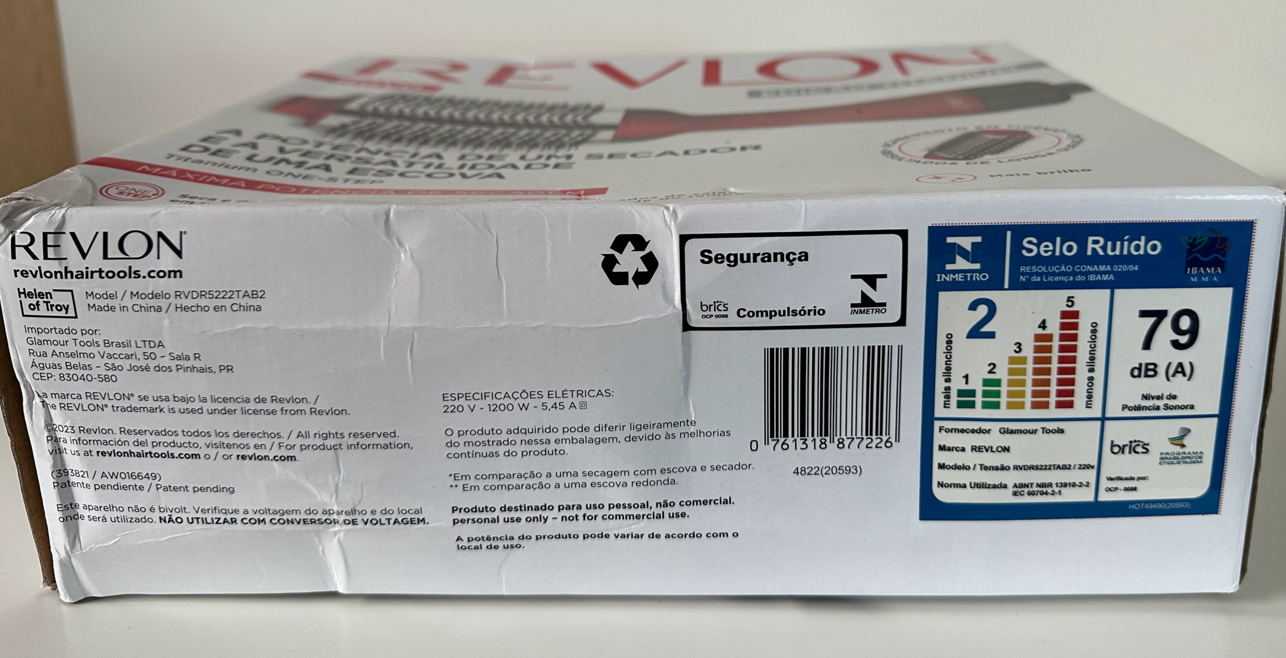 Escova Secadora e Modeladora One-Step Volumizer Titanium REVLON – 1200w – 220v A principal indicação dela é para cabelos longos, muito cacheados e difícil alisamento, pessoas que não querem gastar muito tempo escovando os cabelos. - A REVLON é conhecida mundialmente e chega ao Brasil em grande estilo. - Nossa embalagem é toda em português, trazendo mais comodidade e estilo! - Produto 100% original com Nota Fiscal e certificação do IMETRO. - GARANTIA DE 2 ANOS, contra defeitos de fabricação ou qualquer outro problema que ocorra neste período, basta entrar com contato com o SAC Revlon Brasil pelo email que consta no Termo de Garantia que acompanha o produto.