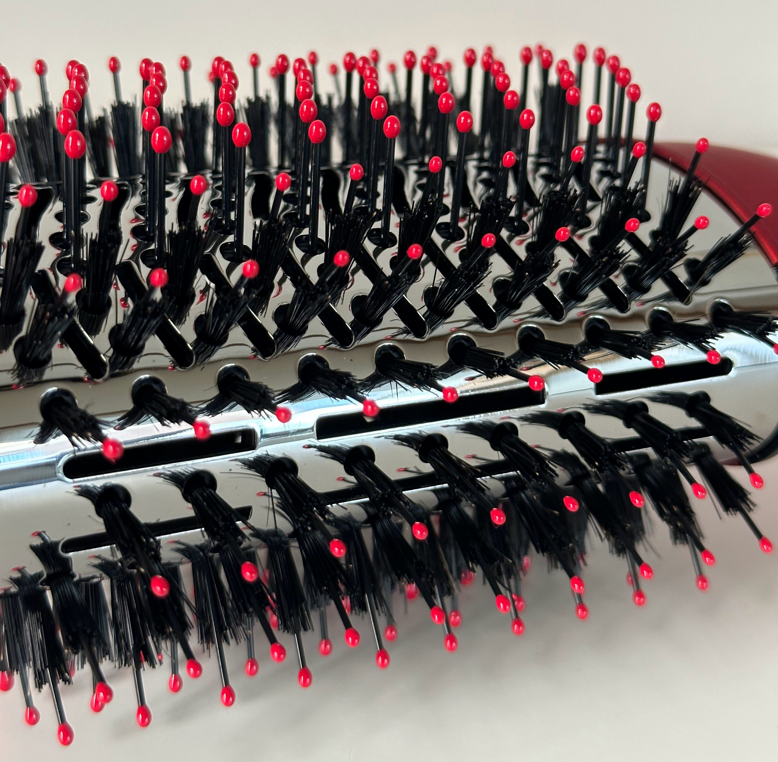 Desenvolvida com pinos e cerdas desembaraçantes dando estilo e volume aos seus cabelos.