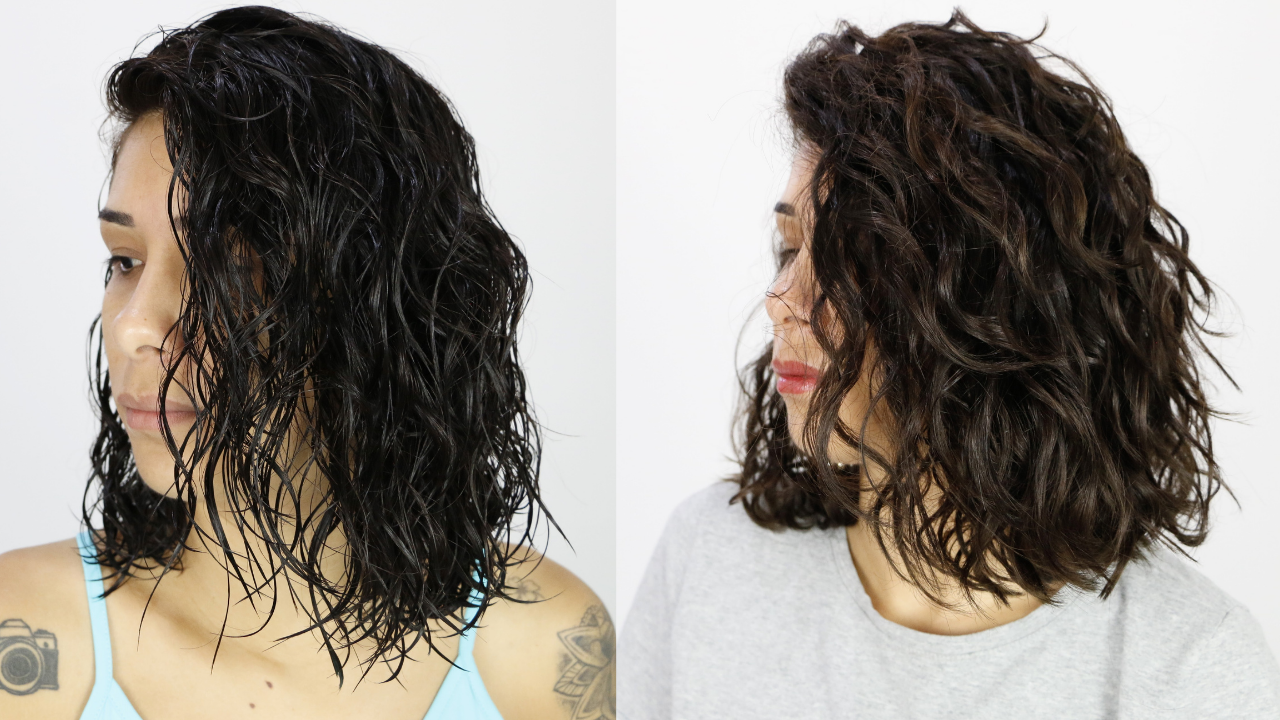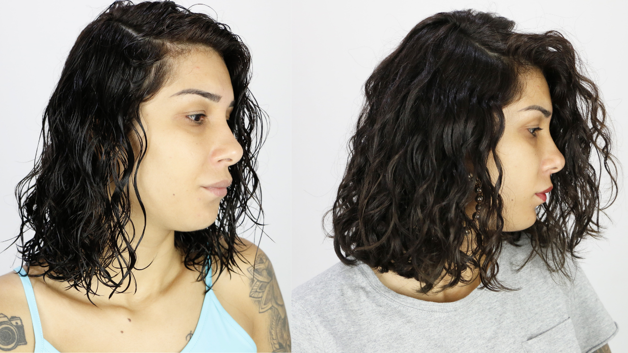 - Para finalizar, retire o excesso de água com uma toalha e aplique o ativador ao longo dos fios. Defina os cachos. Sem enxágue.