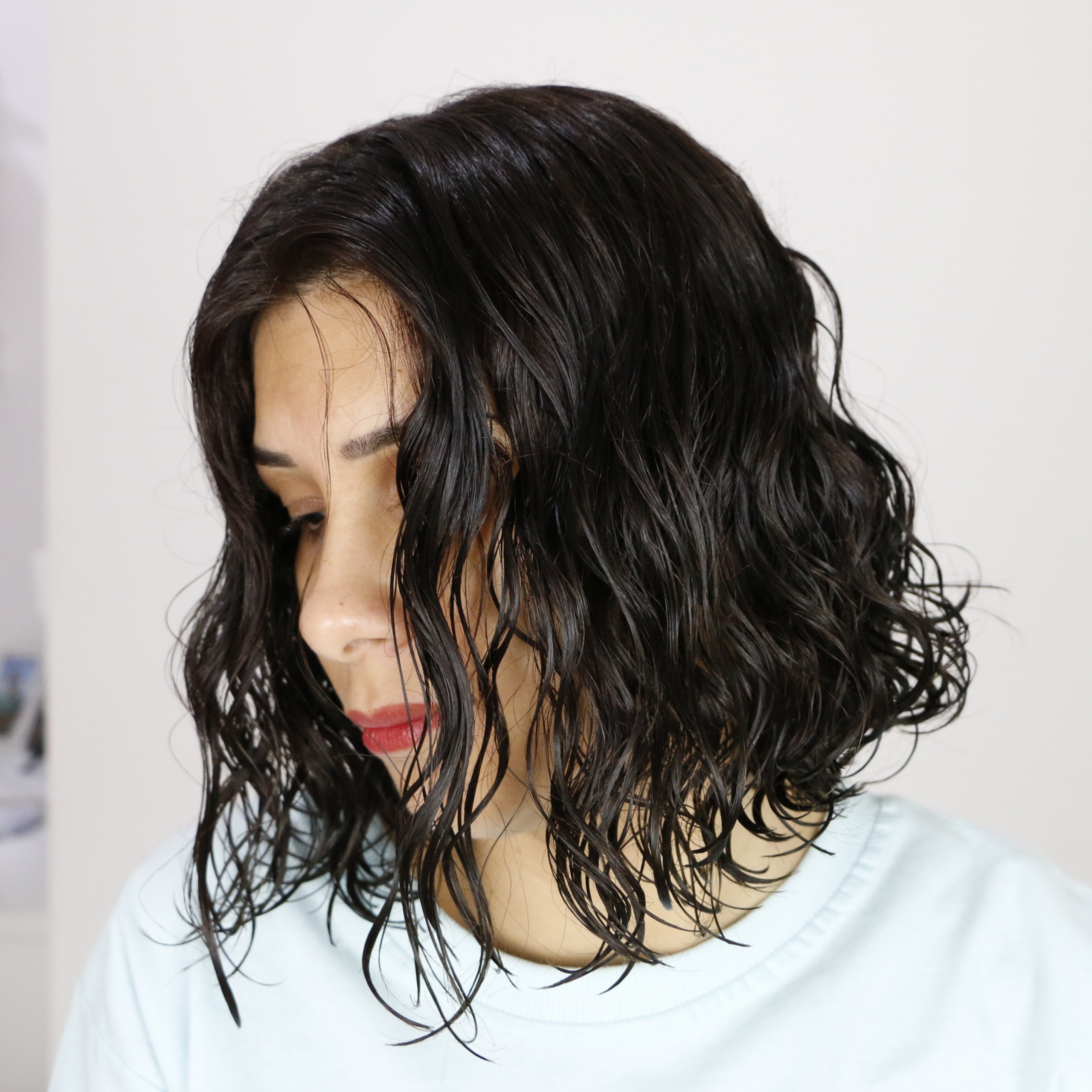 Em seguida utilizei o ativador de cachos para finalizar o cabelo, aplicando mecha por mecha. A textura do ativador é bem grossinha tanto que tive dificuldade de espremer ele da embalagem. Deixei o cabelo secar naturalmente é o cabelo ficou assim antes de amassar.
