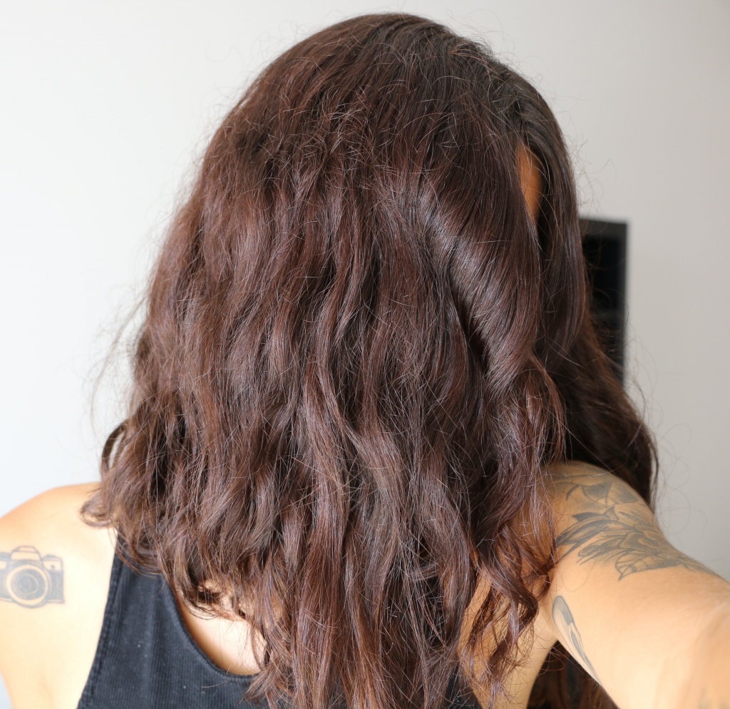 Com o cabelo escovado eu simplesmente amei o resultado, o cabelo fica macio, soltinho e com muito brilho. Já com o cabelo natural o resultado não é o mesmo, o meu cabelo ficou um pouco armado e com frizz, como podem ver na foto abaixo.