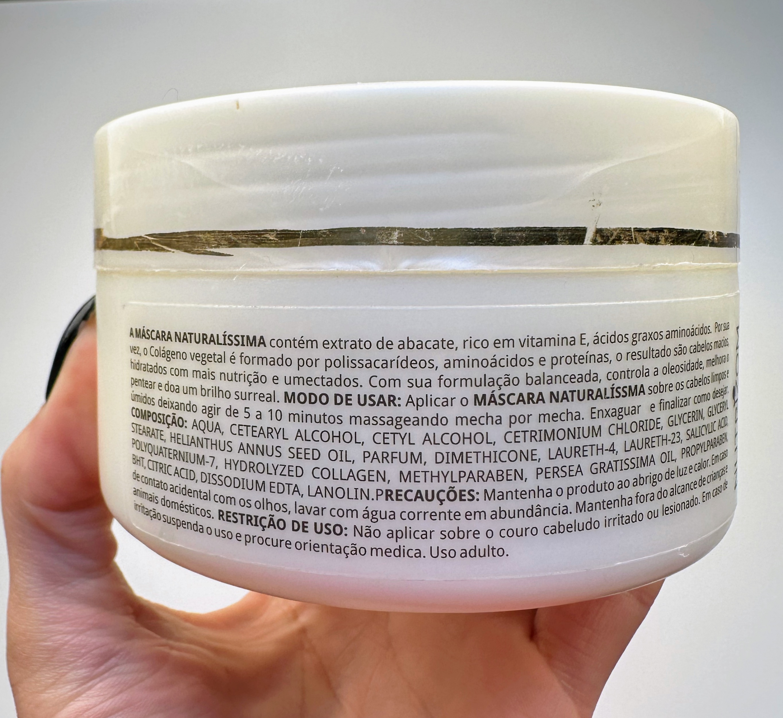 A MÁSCARA NATURALÍSSIMA contém óleo de abacate, rico em vitamina E, ácidos graxos e aminoácidos. Por sua vez, o colágeno vegetal é formaddo por polissacarídeos, aminoácidos e proteínas; o resultado são cabelos macios, hidratados, com mais nutrição e umectação. Com sua formulação balanceada, controla a oleosidade, melhora a penteabilidade e proporciona brilho aos fios.