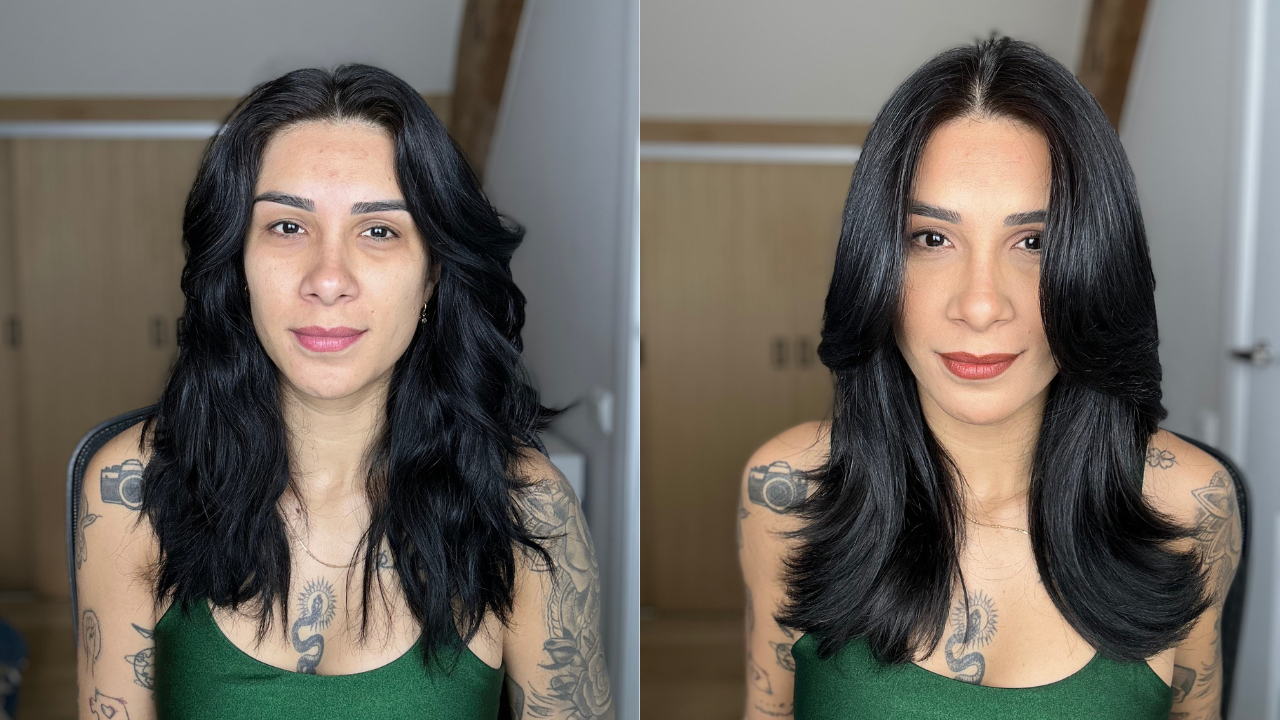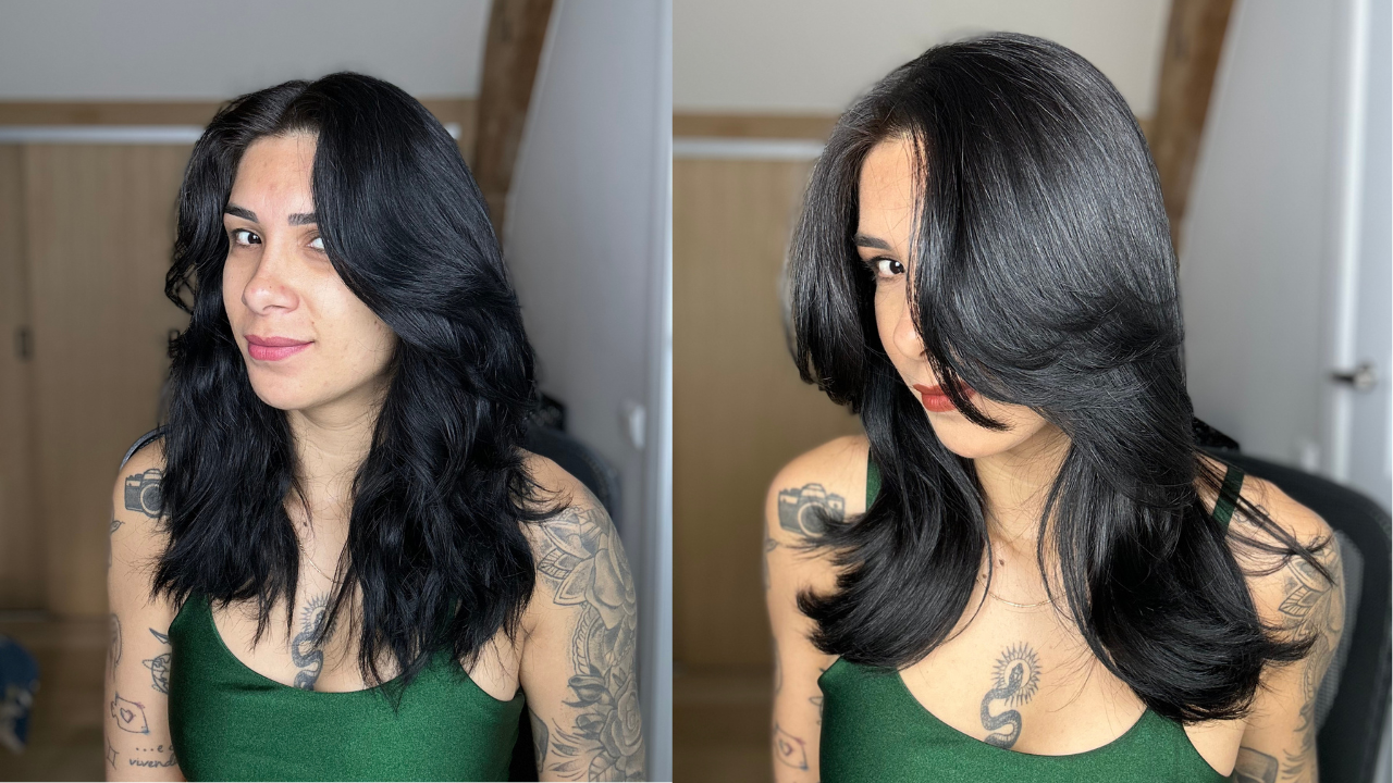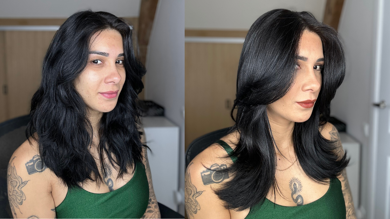 Também notei que o cabelo ficou sem frizz e super alinhado.
