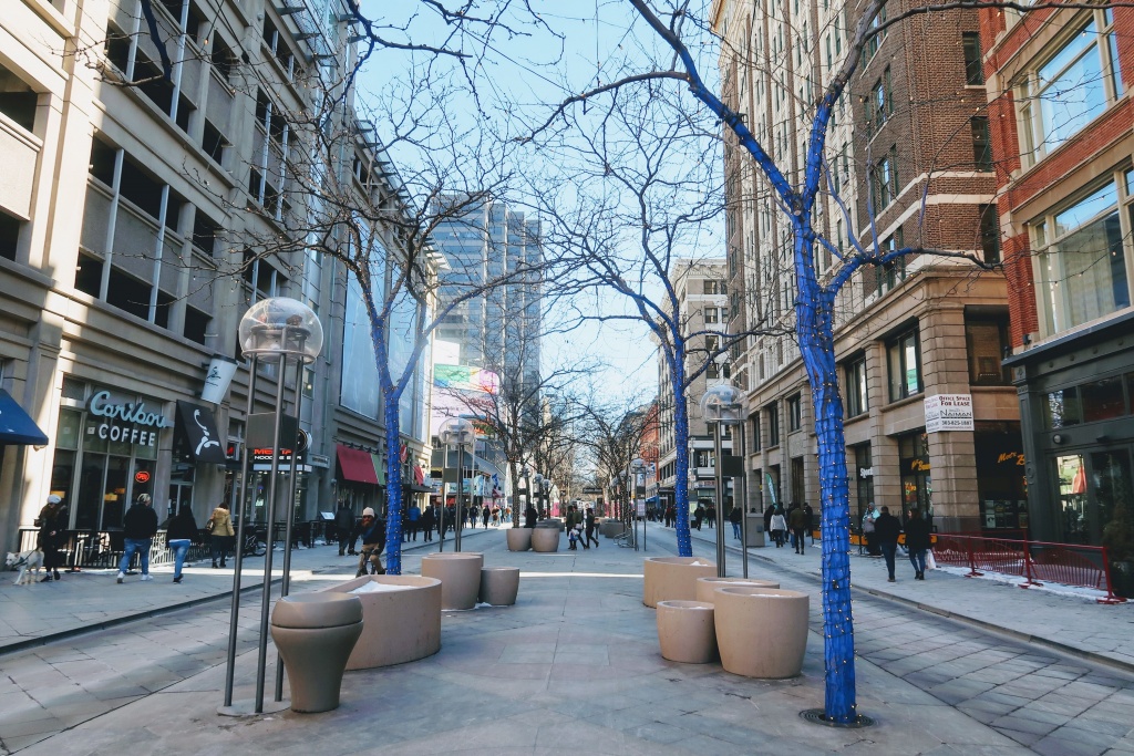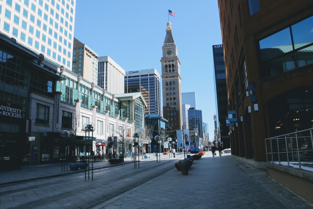 Projetado pelo famoso arquiteto I.M. Pei, o passeio pedestre é feito de granito vermelho, branco e cinza em um padrão de repetição que, visto de cima, se assemelha a pele de uma cascavel de diamante. O Mall oferece as melhores observações de Denver. Existem 42 cafés ao ar livre ao longo do Shopping, tornando-o o local perfeito para comer ou tomar uma bebida. Denver Pavilions, perto do extremo sul do Mall, é um complexo de compras e restaurantes com 12 salas de cinema e mais de duas dúzias de lojas e restaurantes.