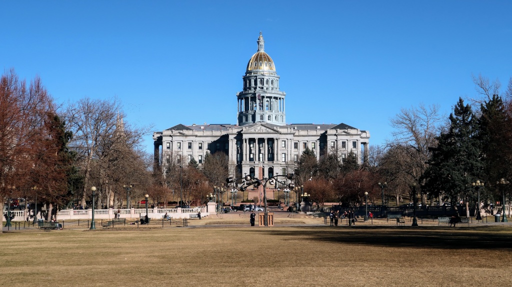 O Capitólio do Estado do Colorado, de cúpula dourada, é uma das características proeminentes no horizonte de Denver. O edifício neoclássico, que fica no extremo leste do Parque do Centro Cívico de Denver, serve como uma espécie de museu para a história do Colorado, e as excursões gratuitas do capitólio são oferecidas de segunda a sexta-feira.