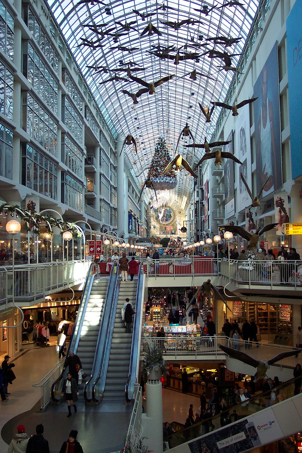 O Toronto Eaton Centre é um grande shopping center, localizado no centro financeiro da cidade canadense de Toronto, província de Ontário. Gostei bastante, tem os tipos de lojas que são mais baratinhas que a gente ama, foto da internet.