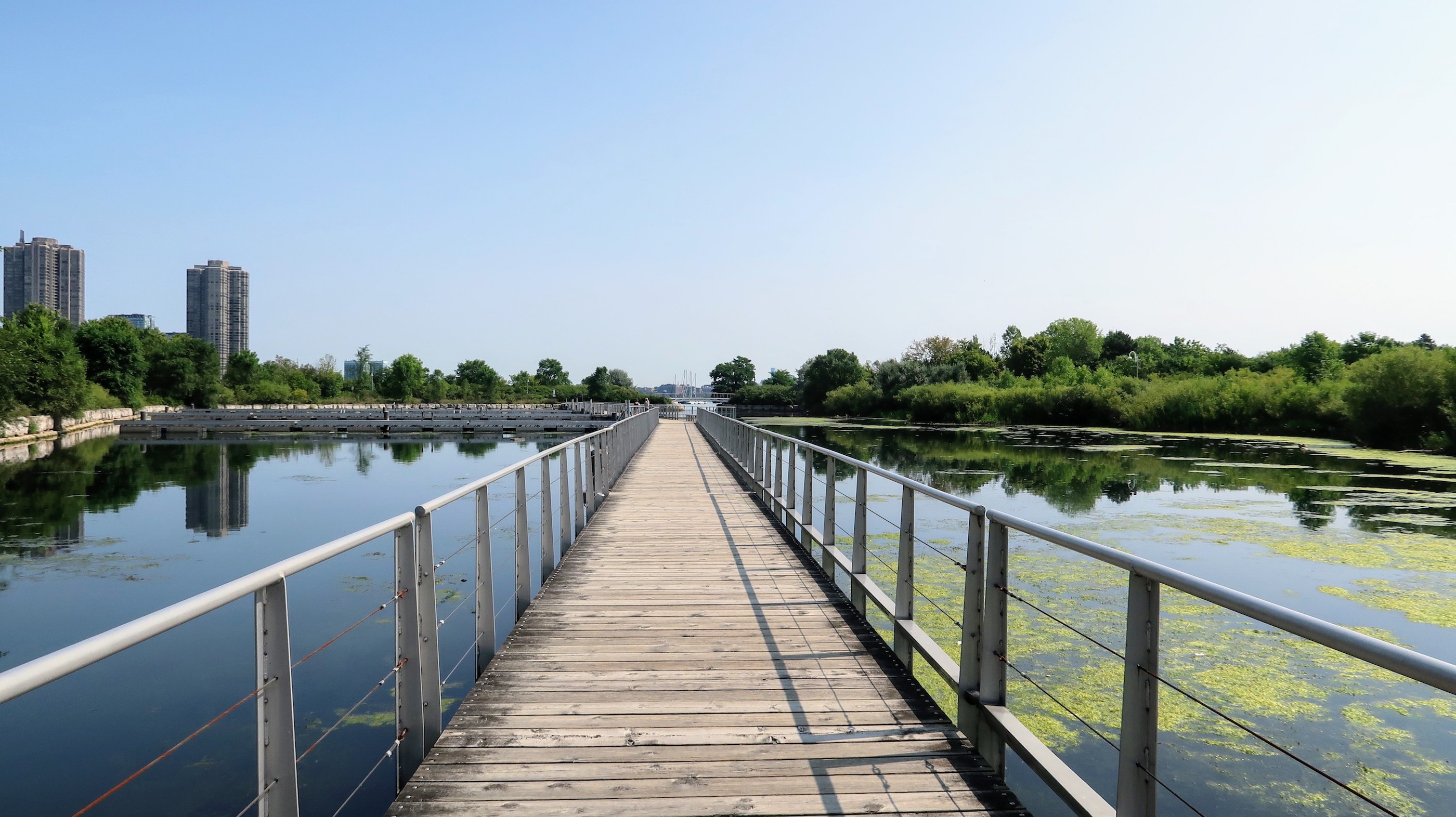 Essa ponte fica praticamente dentro do parque Humber no sentido centro de Toronto, uns 15, 20 minutos andando.