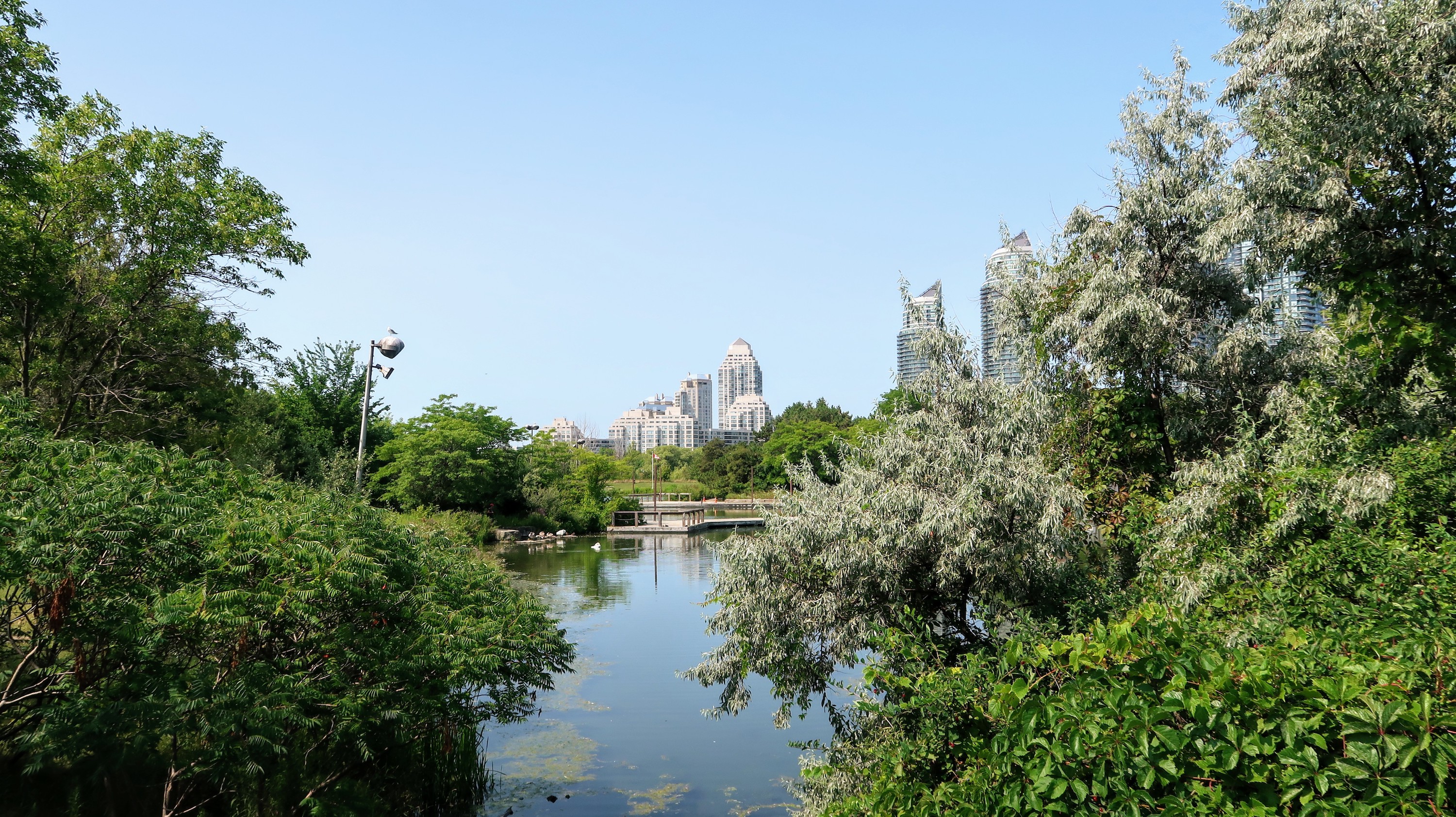 Nos ficamos praticamente em frete ao parque uns 5 minutos andando, e essa é a vista de dentro do parque que é super agradável e lindo. Ótimo para fazer uma caminha no final da tarde! Humber Bay Park é um parque à beira-mar localizado em Etobicoke, parte de Toronto, Ontário, Canadá. O parque consiste em dois terrenos situados na foz do Mimico Creek. O parque fica ao sul do Lake Shore Boulevard West, perto da Park Lawn Road