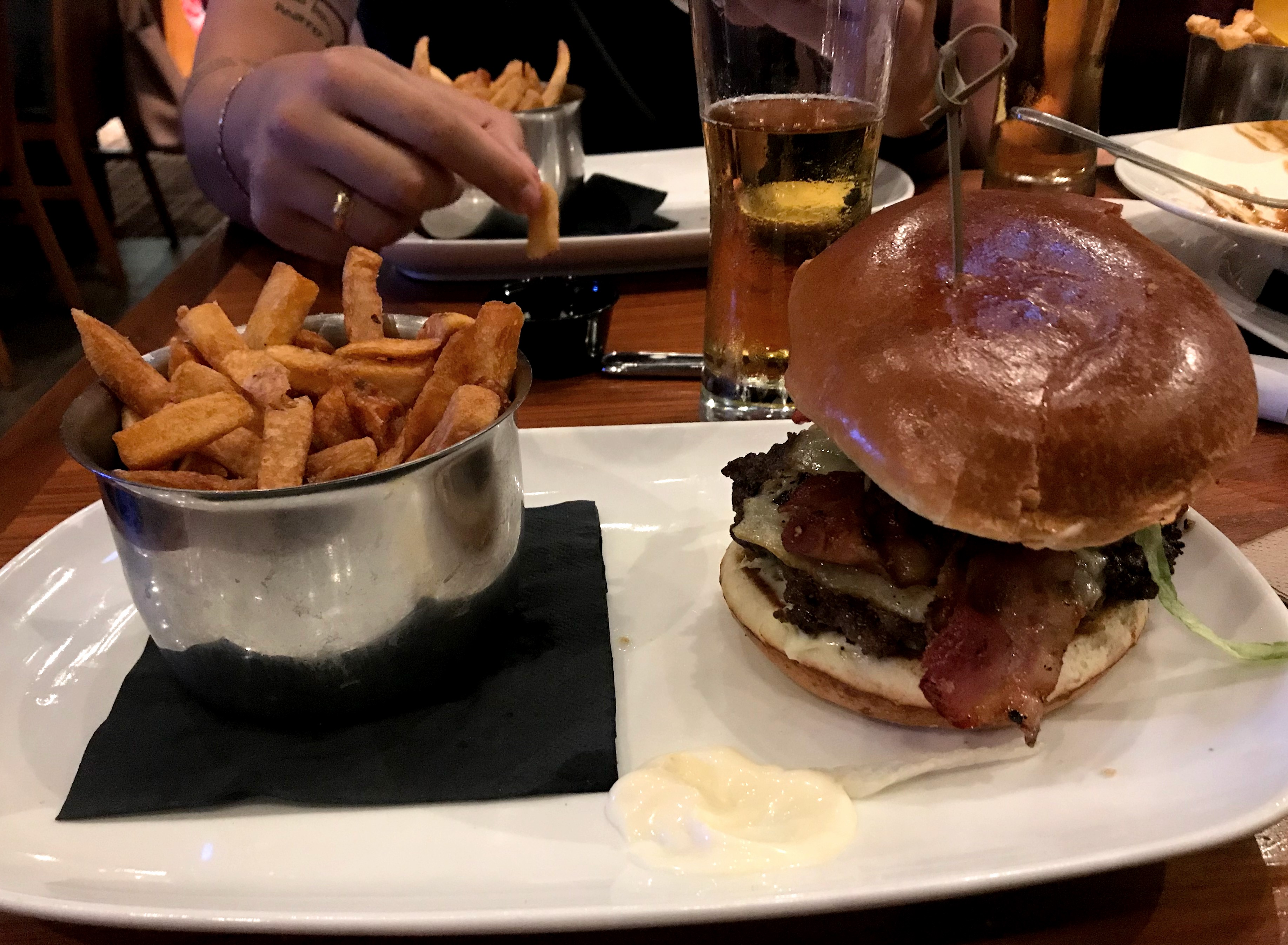 Esse é bem parecido com o de cima, bem frequentado e animado, ideal para tomar uma cerveja e comer algo com os amigos e familiares. Pedi um cheeseburguer que estava divino!