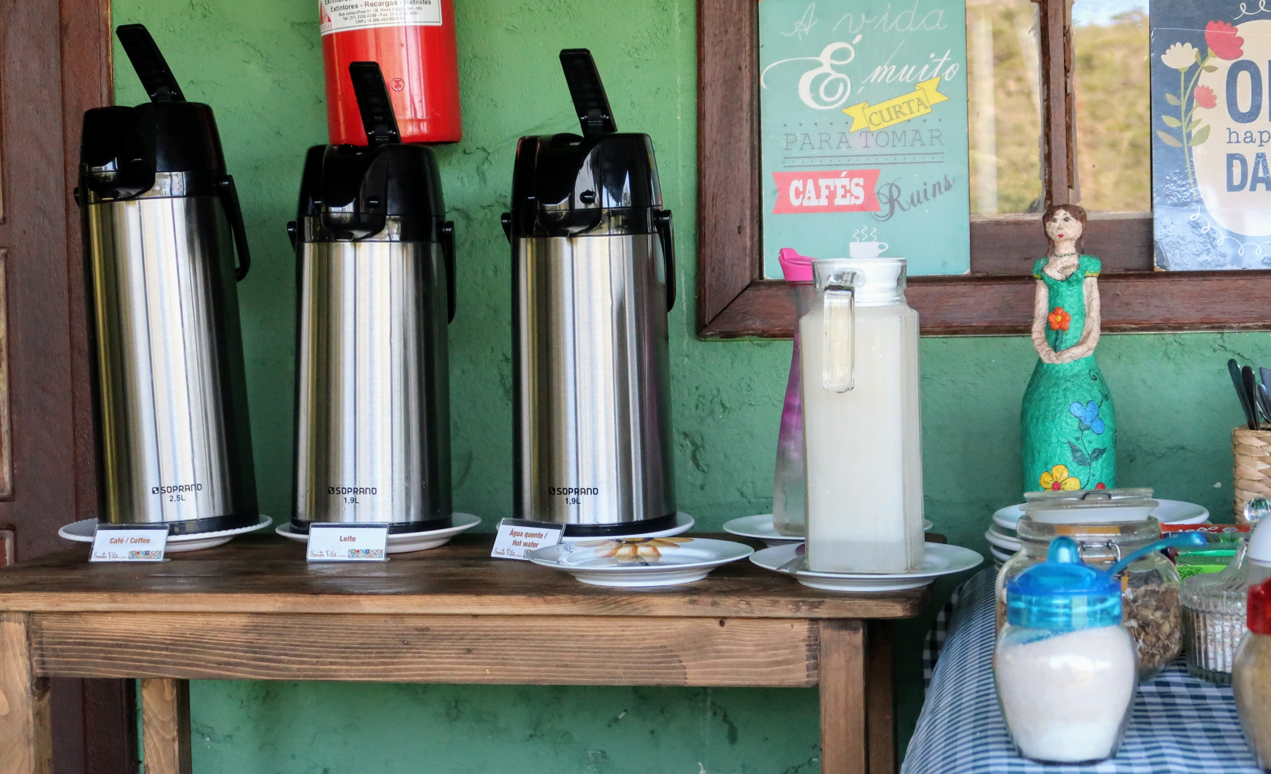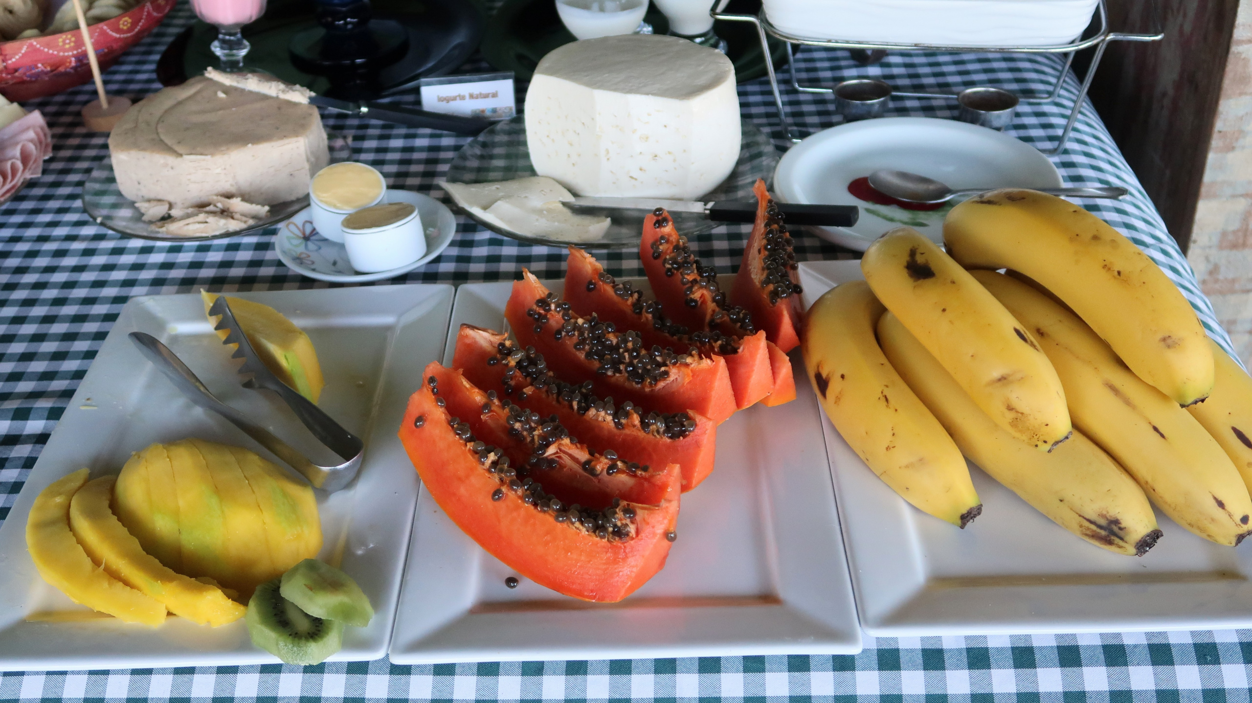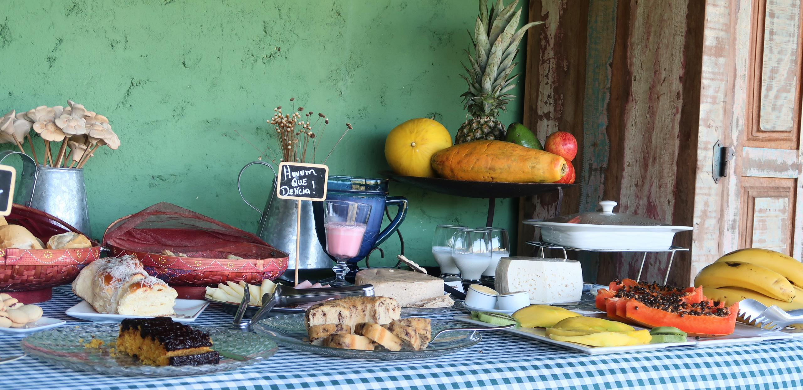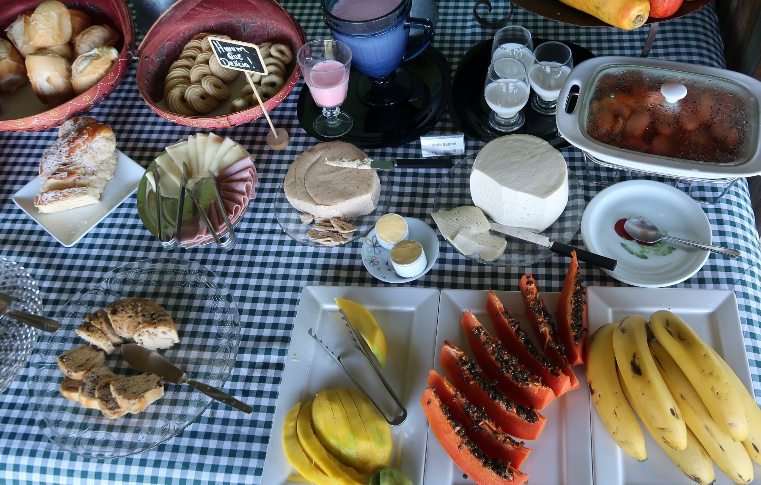 A hora mais importante do dia rsrs, o café da manhã. E sim tem bastante variedades começando pelo café que agente ama, chás, leite, bolos, pães, frutas, sucos naturais, queijo, iogurte feito por eles, além de você poder pedir ovos ou tapiocas que eles fazem na hora. Tudo muito gostoso!