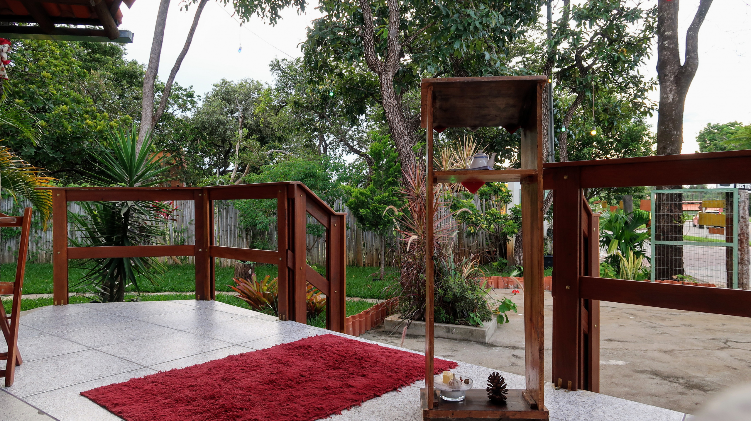 A parte externa do chalé também é uma graça, tudo muito lindo e bem cuidado.