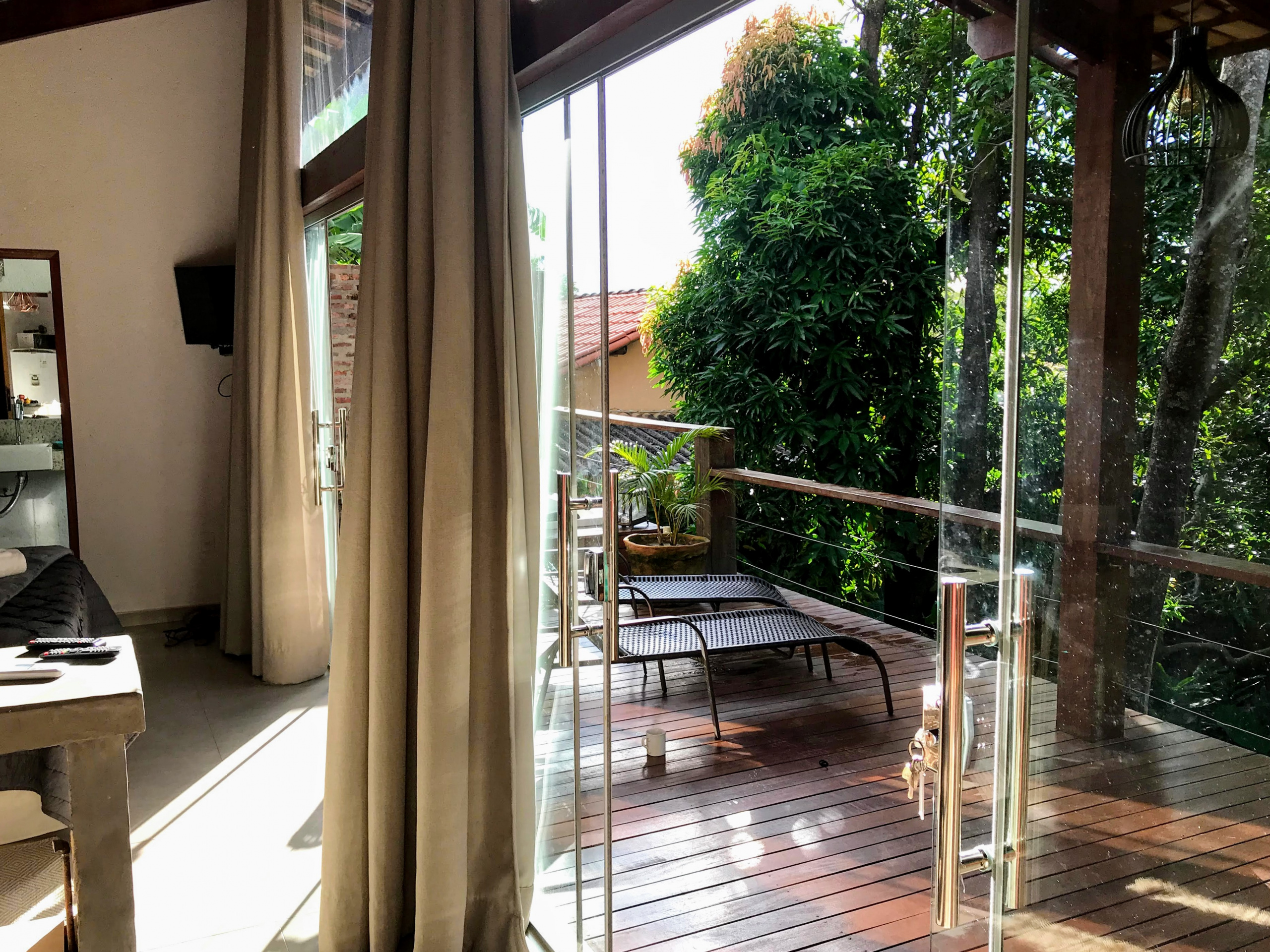 As portas são todas de vidro mas tem cortinas Blackout em todas elas.