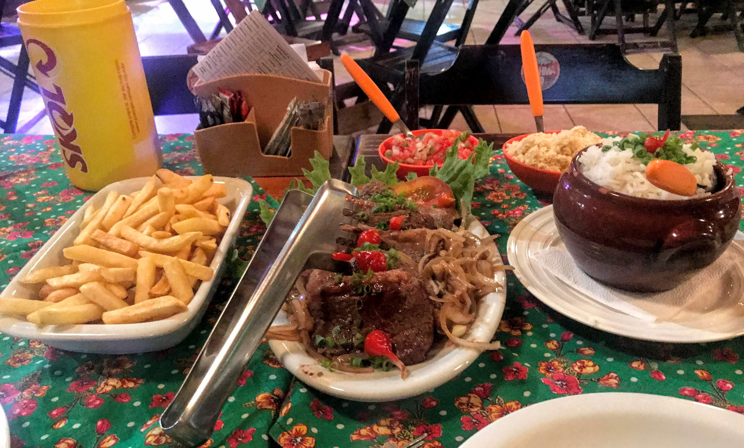 Este é um restaurante que fica próximo a vários outros e servem porções e pratos individuais também, pedimos um prato de picanha com acompanhamentos para duas pessoas e custou R$ 89,90 reias. Dependendo da pessoa serve até três pessoas.