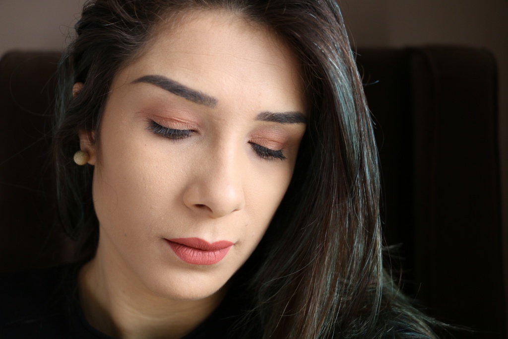 Vamos as considerações da base, a proposta é ser uma base matte, que controla o brilho e a oleosidade e minimiza os poros. Bom em relação a essas especificações eu não achei tudo isso, ela é sim uma base matte mas ainda deixa passar um pouco de brilho. Ela também consegue controlar a oleosidade por umas três ou quatro horas no máximo, dependendo do dia se estiver muito quente nem chega a 4 horas.