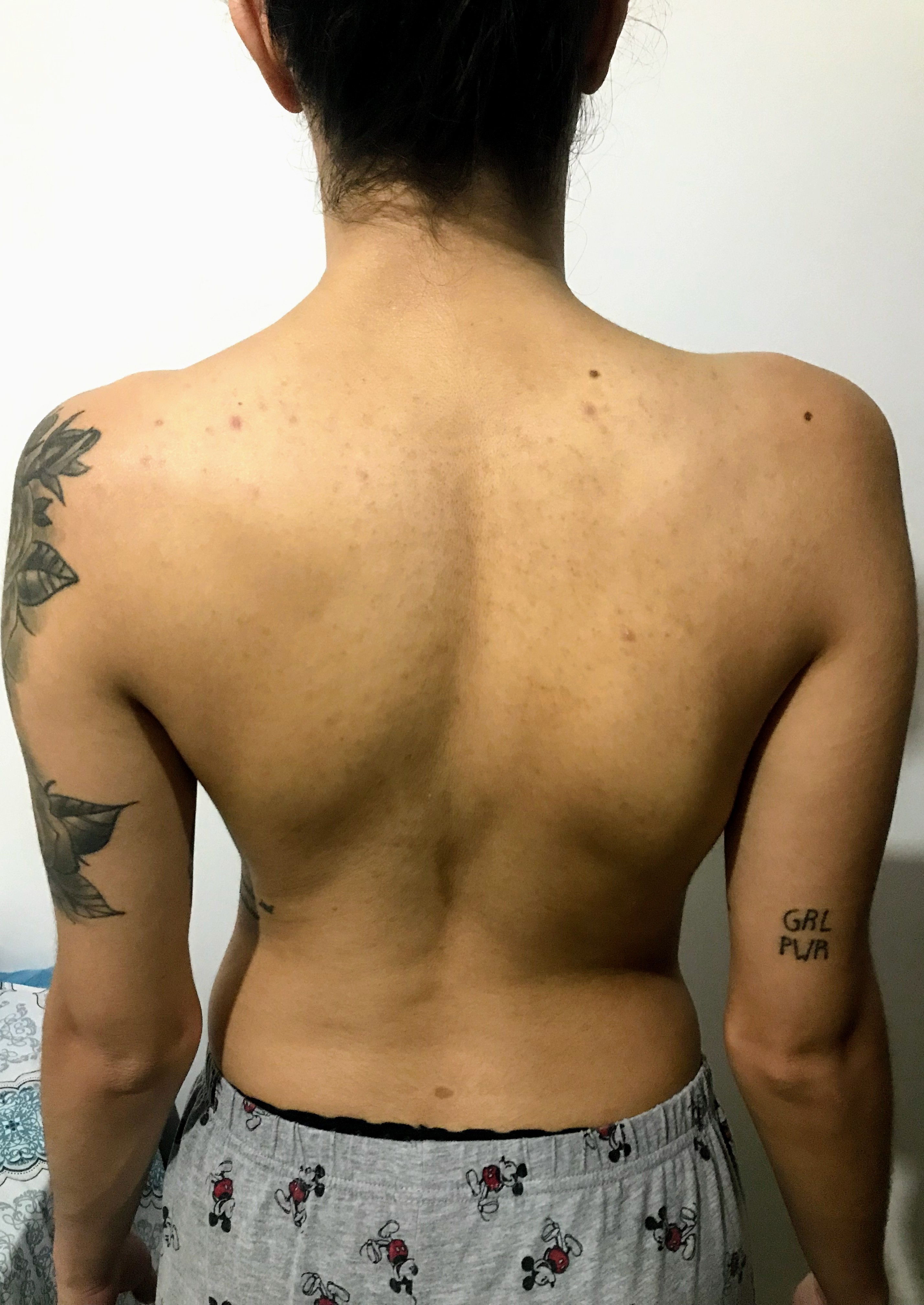 Já são quase 4 meses completos de tratamento e estou cada dia melhor física e psicologicamente falando. Nem acredito que eu já estou utilizando roupas que mostram as costas e até biquíni, e o melhor de tudo me sentido normal com isso, sem medo, sem vergonha. Quero aqui também agradecer a Natalia que além de ser uma excelente profissional é um amor de pessoa❤️. Agora vou deixar vocês com mais fotos para ver melhor os resultados durante esses quatro meses de tratamento.