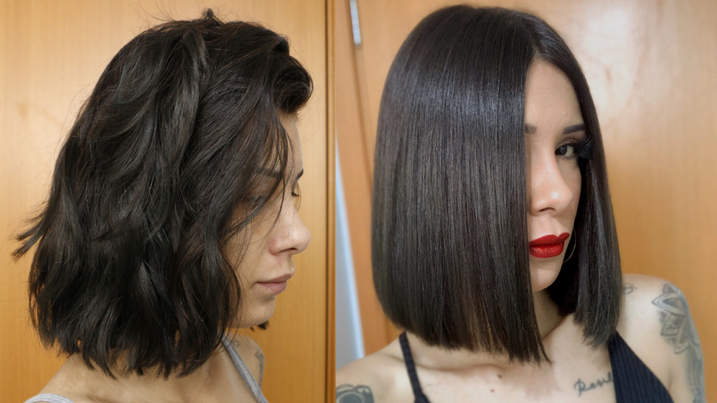 E desde o momento que comecei a secar meu cabelo, eu notei muito brilho e maciez. Depois eu pranchei mecha por mecha e o cabelo ficou muito soltinho e alinhado.