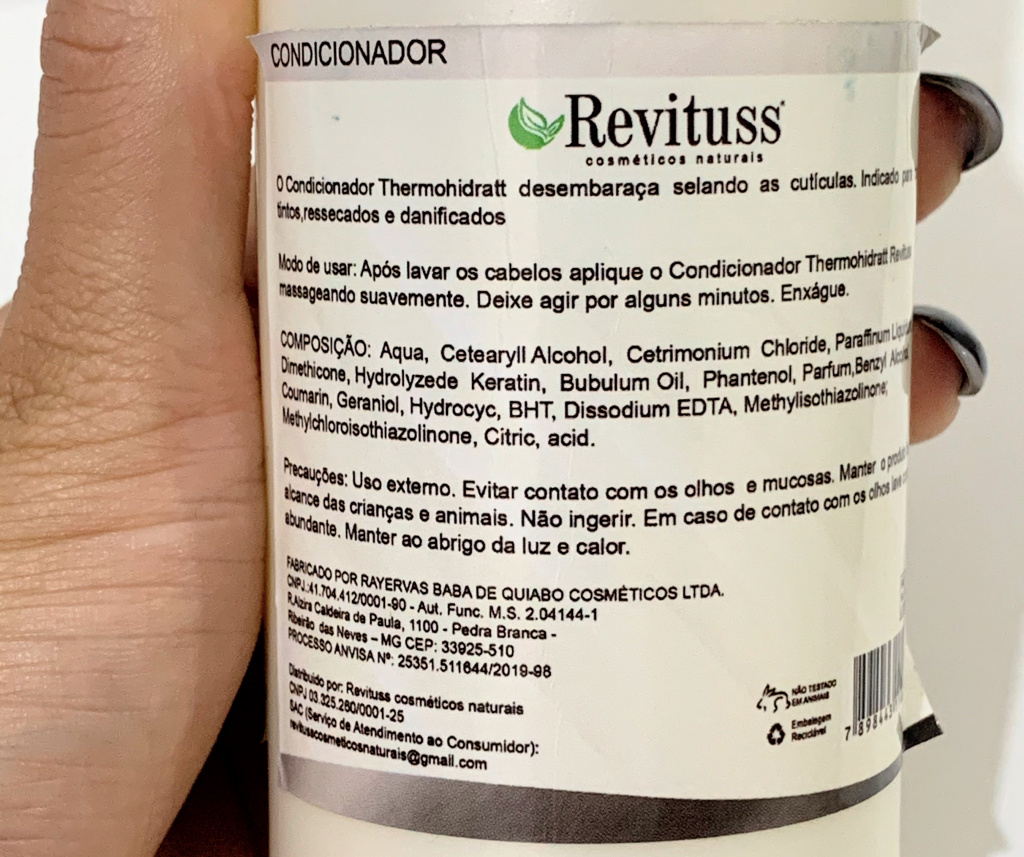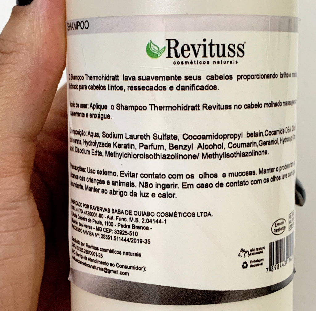 REVITUSS LINHA NATURAL LINHA THERMOHIDRATT shampoo, condicionador e a máscara thermoativadora. Para cabelos tintos, danificados e ressecados, a linha auxilia no brilho e maciez e tira todo o ressecado dos fios. Linha com o PH Neutro.