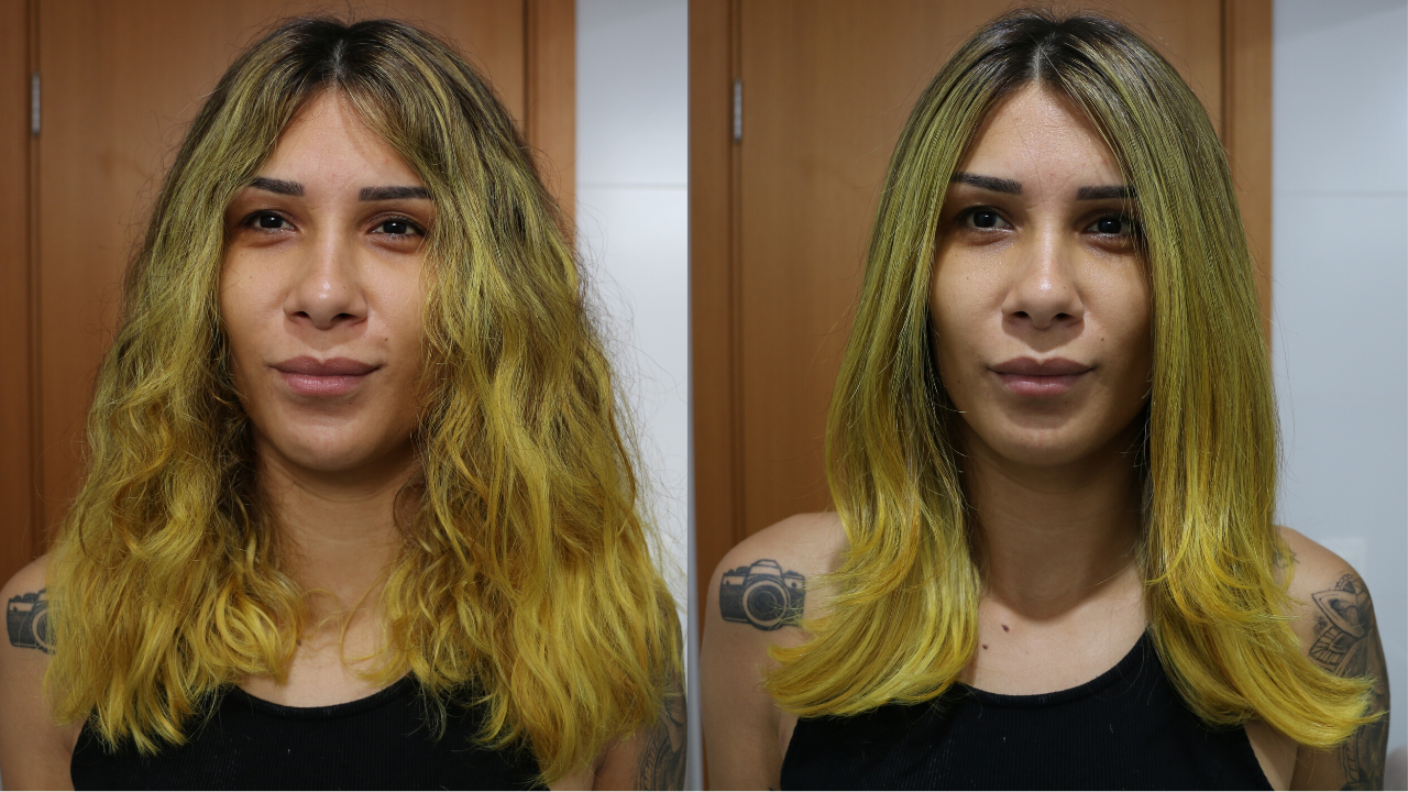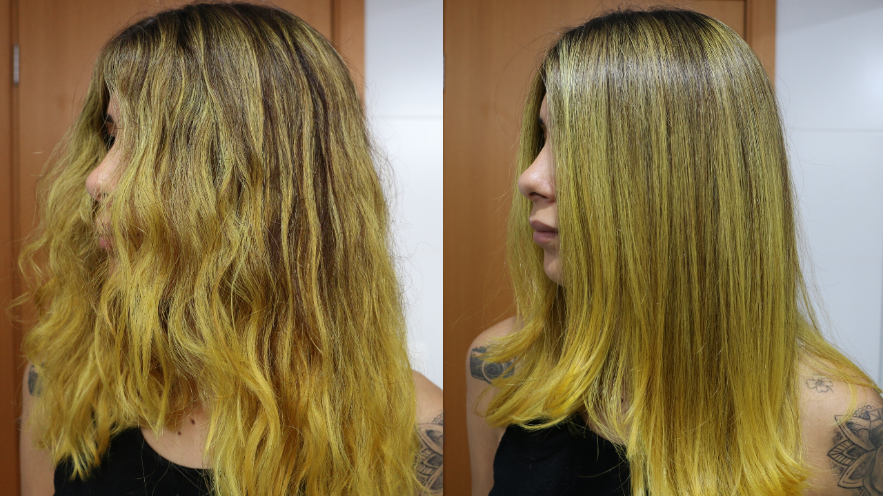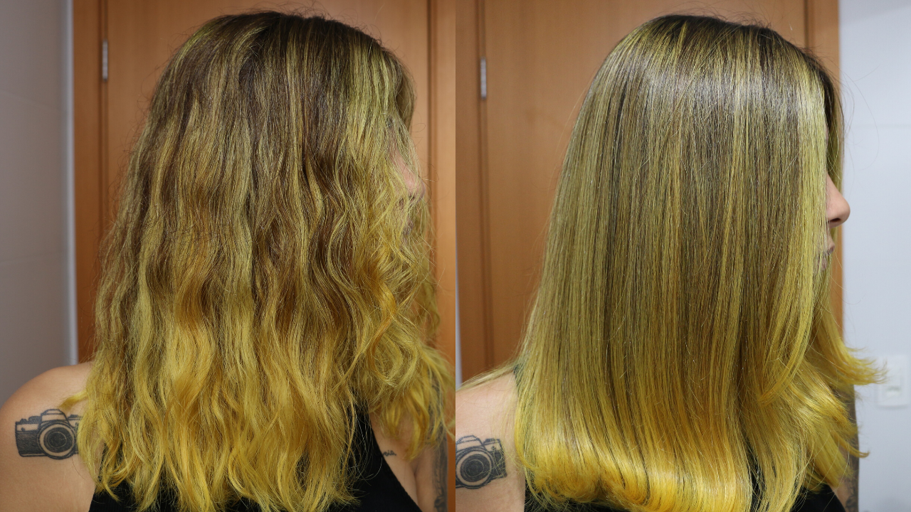 Eu amei a consistência do creme e o cheiro também, achei que ficou bem macio e soltinho na primeira vez que utilizei. Mas percebi que o cabelo ficou com um pouco de firzz, apesar de saber que o me cabelo tem ficado com um pouco de frizz mesmo com outros cremes depois das luzes. Na foto podem ver o resultado com o cabelo natural e com o cabelo escovado, sendo os dois resultados do mesmo dia